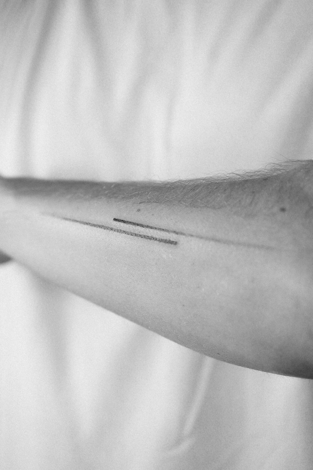 A subtle pair of lines on the forearm might seem simple, but the beauty is in the interpretation.