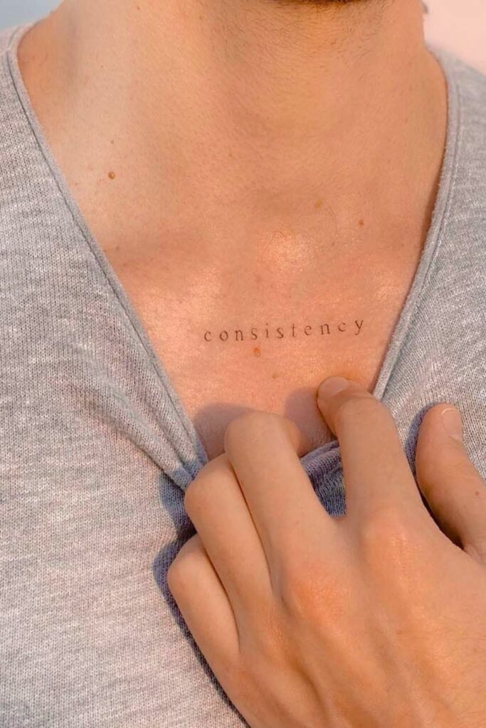 A single word, consistency, inked gently across the chest, reminds us that greatness isn’t built overnight.
