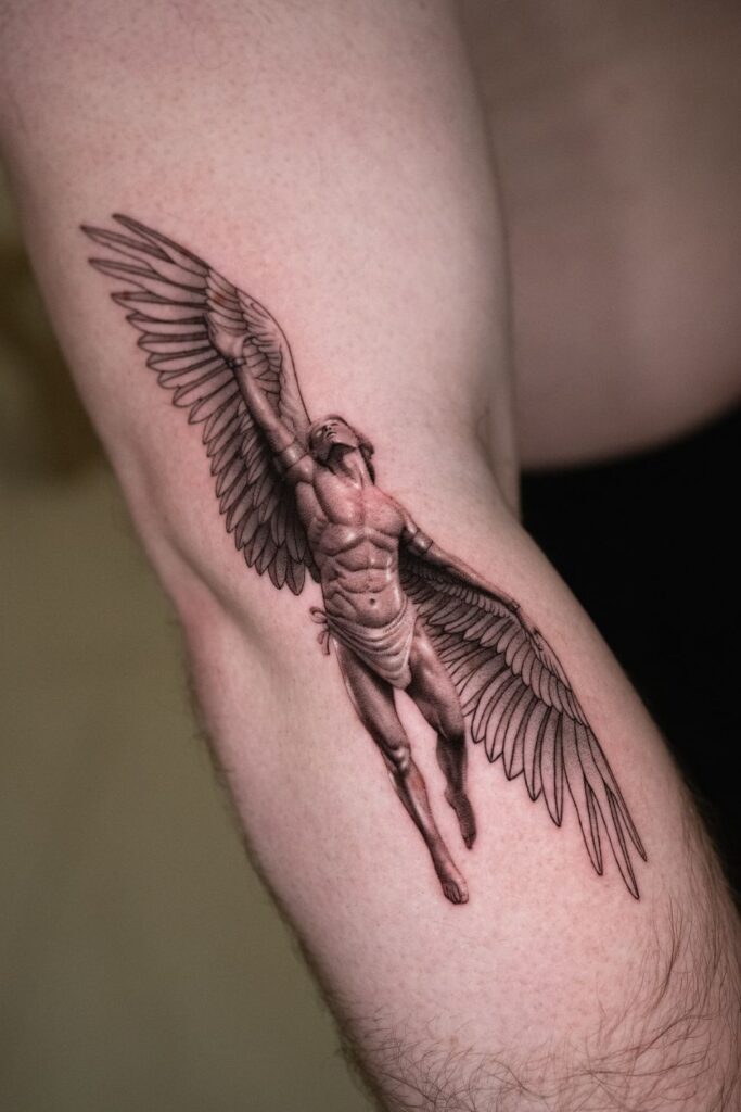 Icarus-Inspired Inner Arm Tattoo