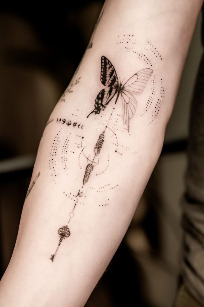 Butterflies can also fit into tattoos showing strength and growth because they reflect change and evolution.