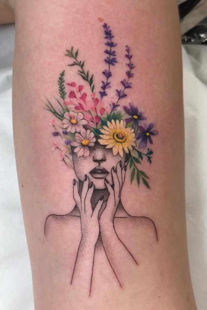 It is especially popular in feminine strength tattoo ideas because of its soft and meaningful look.