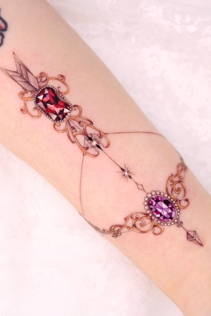 An arrow must be pulled backward before it shoots forward, which makes it a powerful idea for strength and growth tattoo designs.