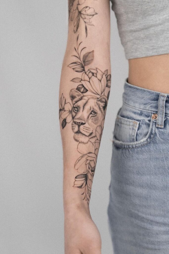 Animals play a beautiful role in tattoos that represent strength woman. For example: