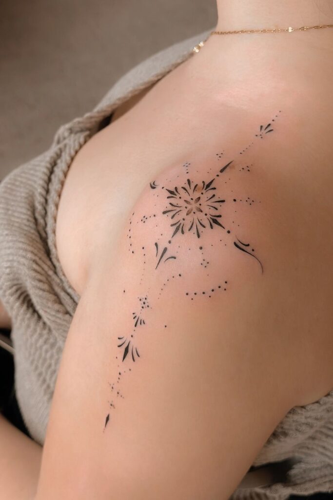 Cosmic Bloom Shoulder Tattoo
