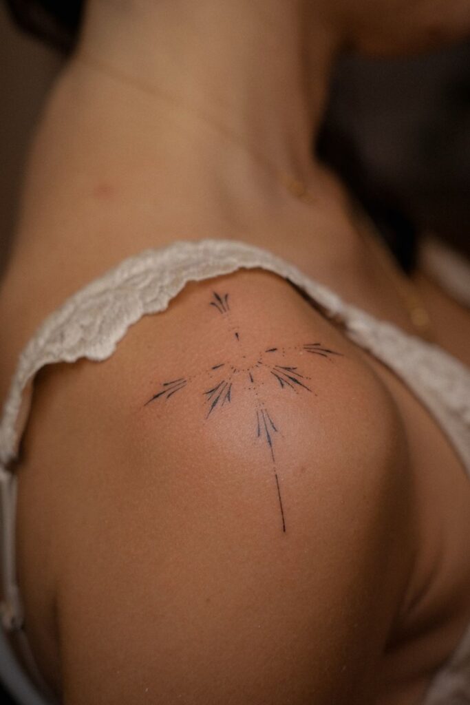 Minimalist Starburst Linework Tattoo