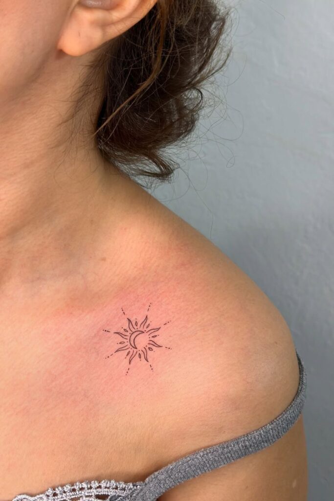 Mini Sun & Moon Collarbone Tattoo
