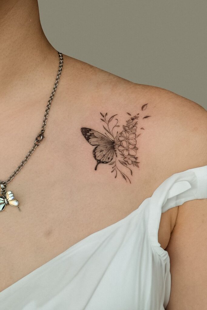 Floral Shoulder Flow with Butterfly Tattoo