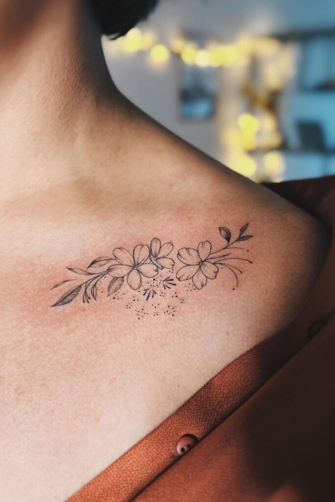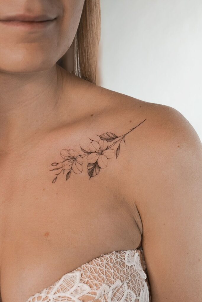 Delicate Blossom Collarbone Tattoo