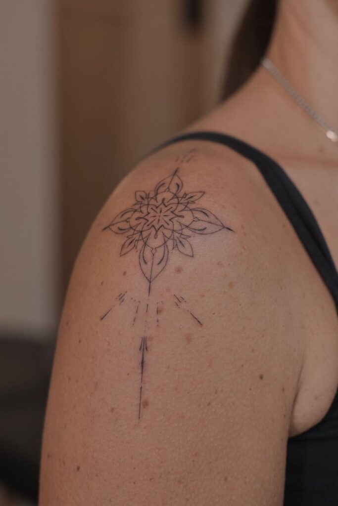 On the other hand, if you’re comfortable with your tattoo being a statement piece, a bold mandala or a large floral shoulder wrap can be both stunning and empowering.