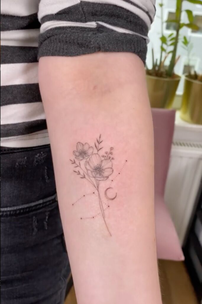 Ideal for free spirits, empaths, and plant lovers, this virgo flower tattoo brings together feminine beauty and celestial power in one gentle design.