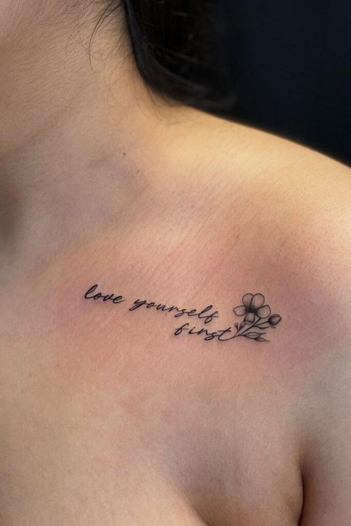 It’s an excellent tattoo ideas female on chest option for those who want a personal mantra or meaningful quote inked in an understated yet impactful way.