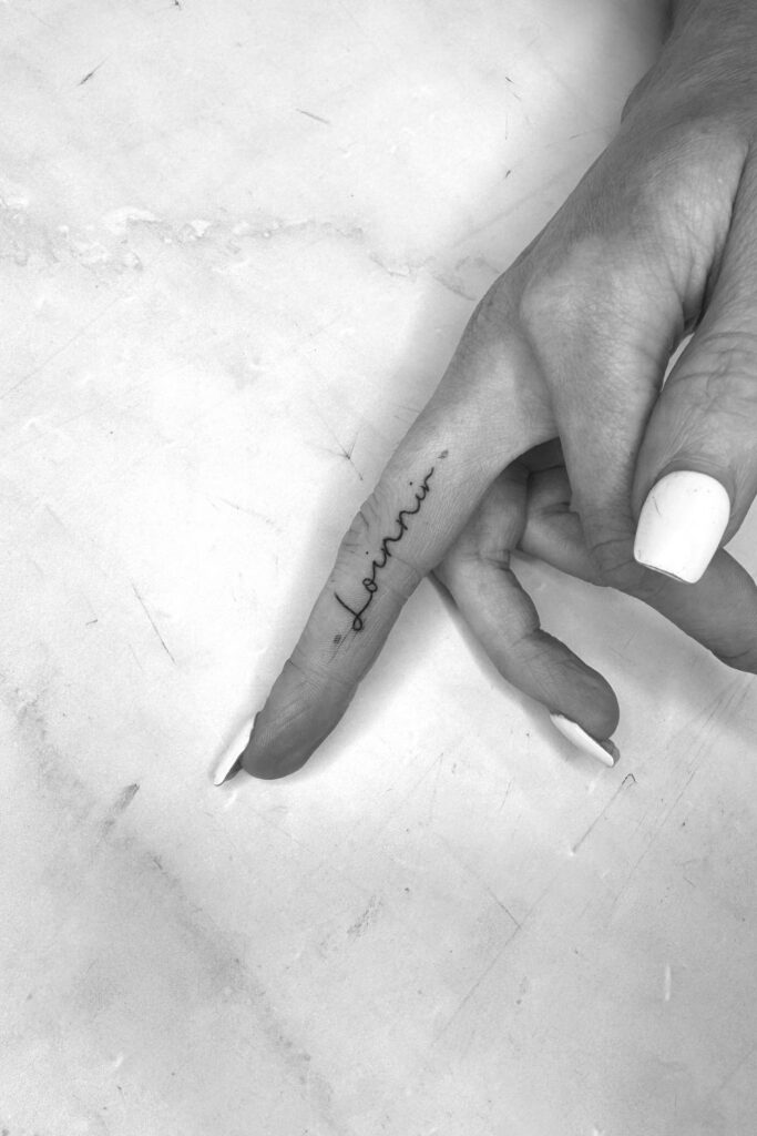From single words on the side of a finger to initials across the knuckles, this placement has a bold, modern feel.