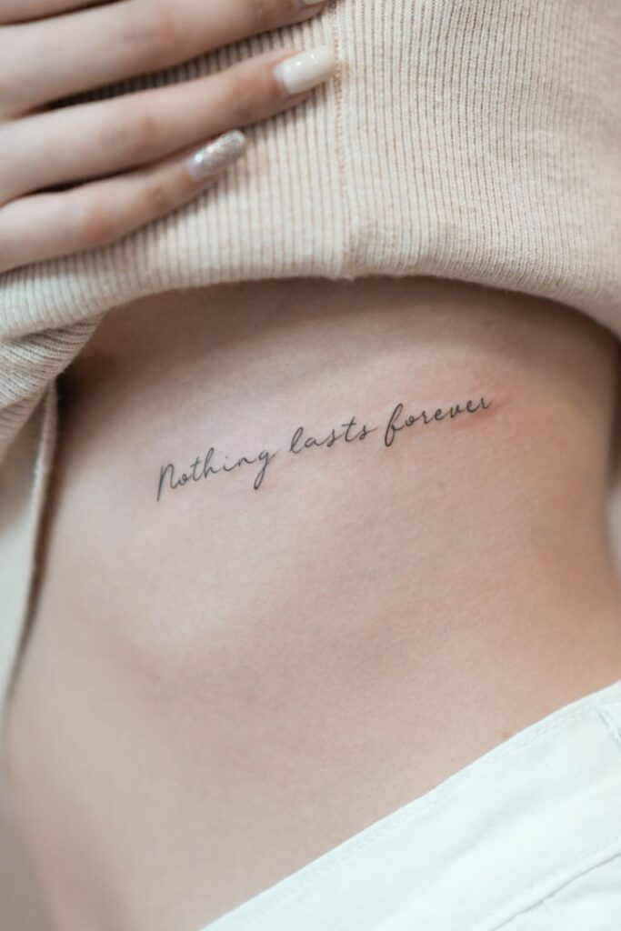 For example, a quote along the ribcage may feel deeply personal and private, while a single word on your wrist can act as a daily reminder or affirmation you see every time you look down.
