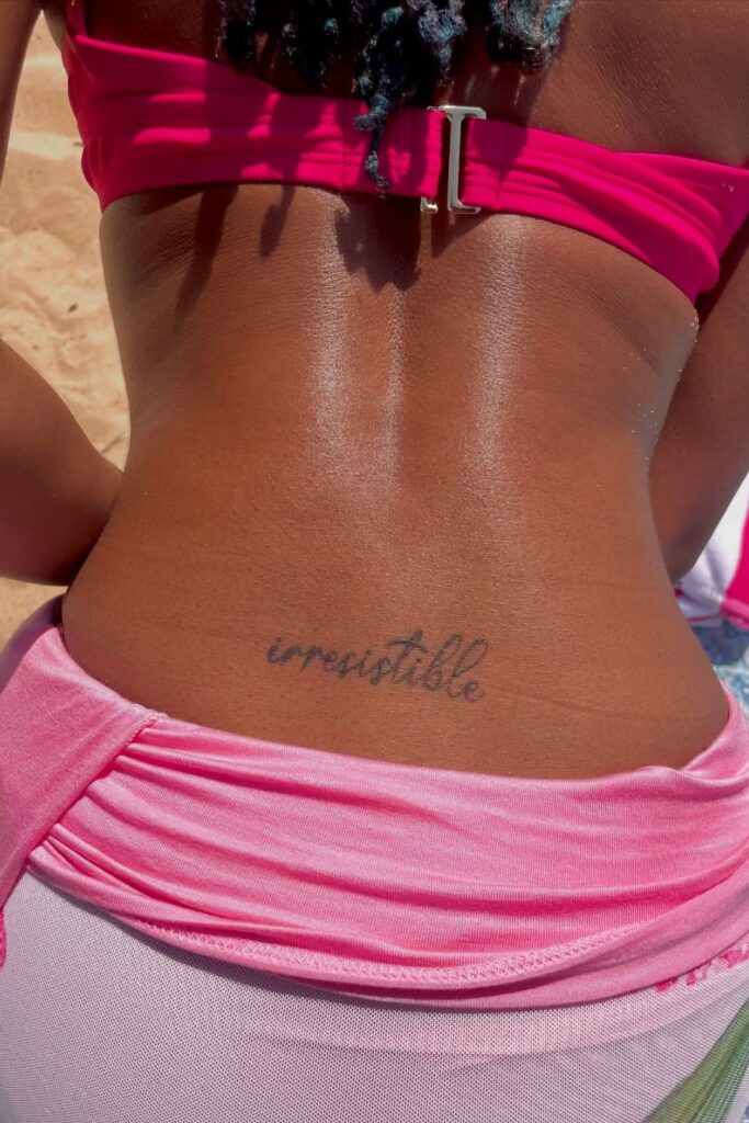 It’s also a favorite for small word tattoos for women who want to keep things light, cute, and elegant.