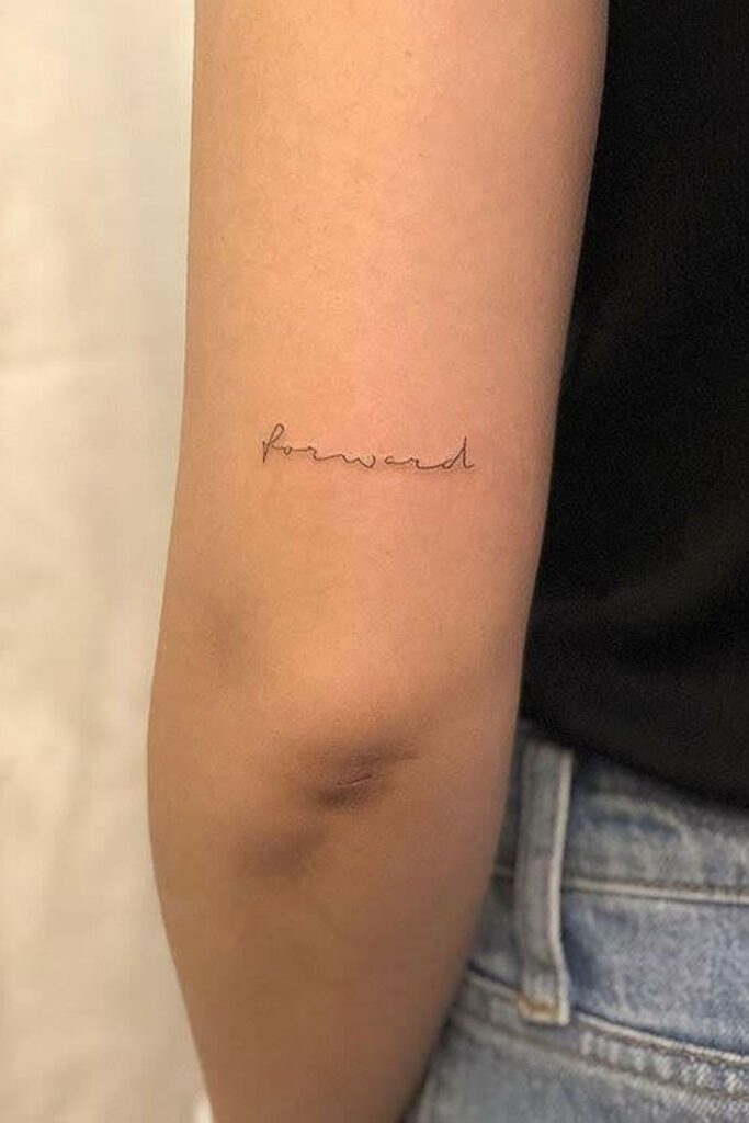 A delicate script word like “forward” fits beautifully here, giving off a soft, minimalist vibe with meaningful impact.