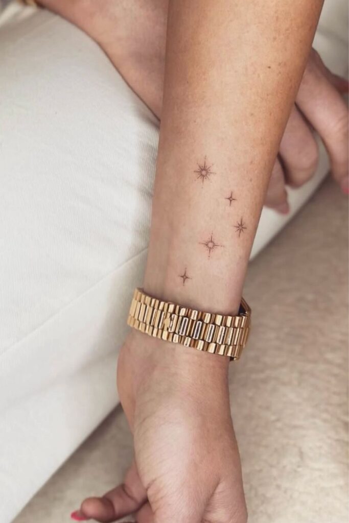 This dreamy constellation of fine-line stars sparkles with celestial charm.