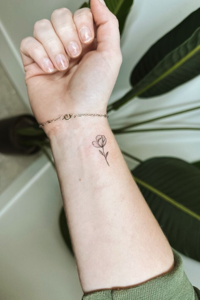 Its subtle, clean design makes it ideal for those who want a cute wrist tattoo that’s both dainty and full of symbolic weight, perfect for romantics or those embracing their own blooming journey.